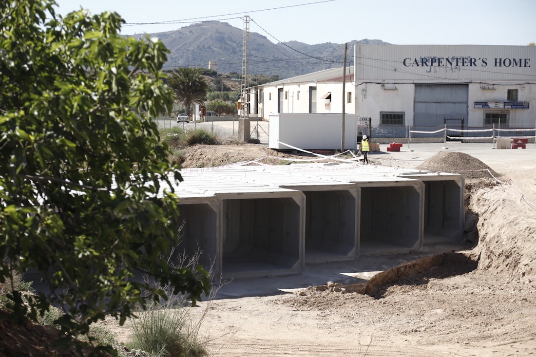 Otra de las actuaciones que dará más seguridad al tráfico y evitarña cortes de carreteras en caso de lluvias es la obra hidráulica que se está desarrollando sobre el paso de la rambla de Benipila, en la carretera que comunica los Molinos Marfagones con Los Dolores.
