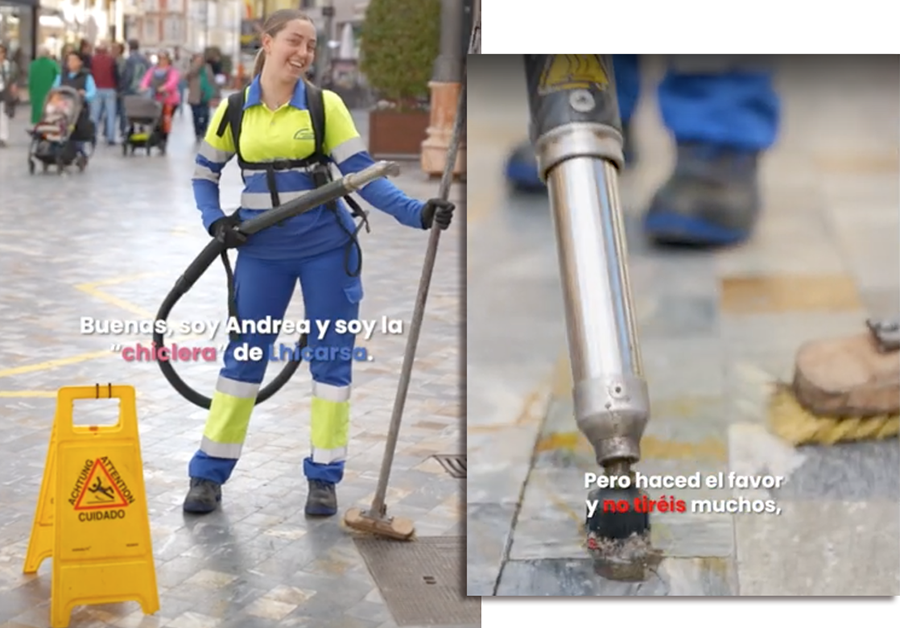 Andrea es una de las personas que se encarga de recoger los chicles de la vía pública dentro del equipo de la empresa que se encarga de la limpieza en Cartagena. "Tú tiras un chicle, pues yo lo recojo; que no lo tiras, pues muchas gracias", dice, pues una vez que se pegan al suelo es muy laborioso quitarlos.