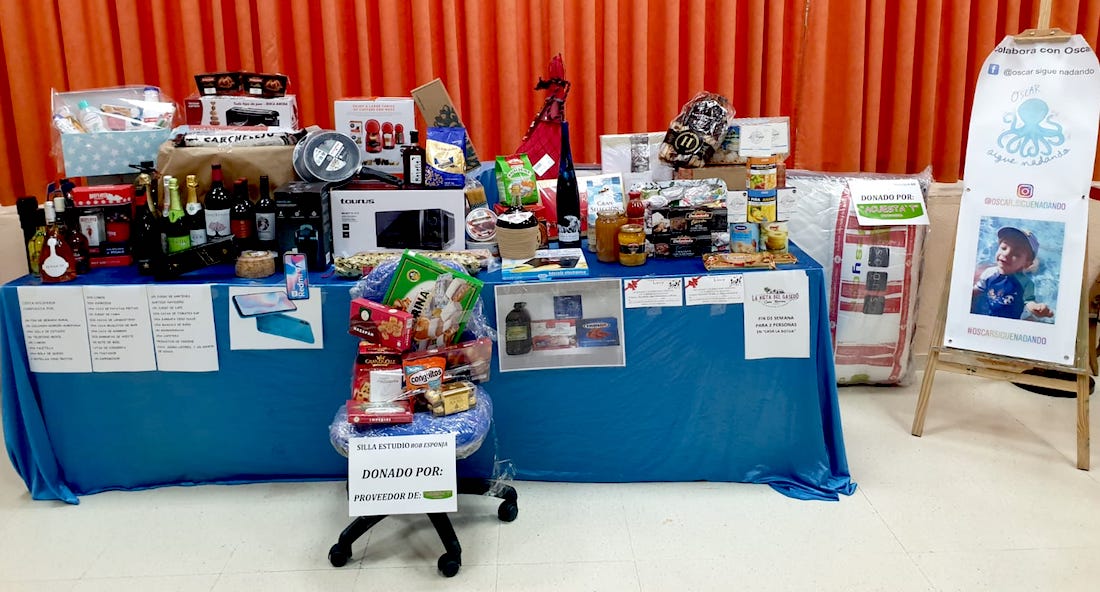 Los vecinos de Perín comenzaron su colaboración vendiendo lotería, que enseguida se acabó, y tenían previstas otras actividades solidarias que la situación pandémica ha frustrado, no así la rifa de una macrocesta que refleja cómo se volcando comercios y particulares de la zona, al igual que lo muestra los mil números vendidos en apenas dos semanas, siendo todo el dinero recaudado para Óscar.