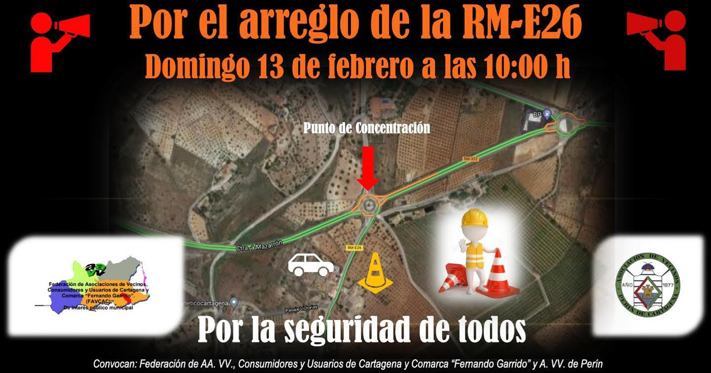 La Federación de Asociaciones de Vecinos y la Asociación de Vecinos de Perín ha organizado una concentración este domingo a las 10 horas para exigir el arreglo de la carretera RM-F16.