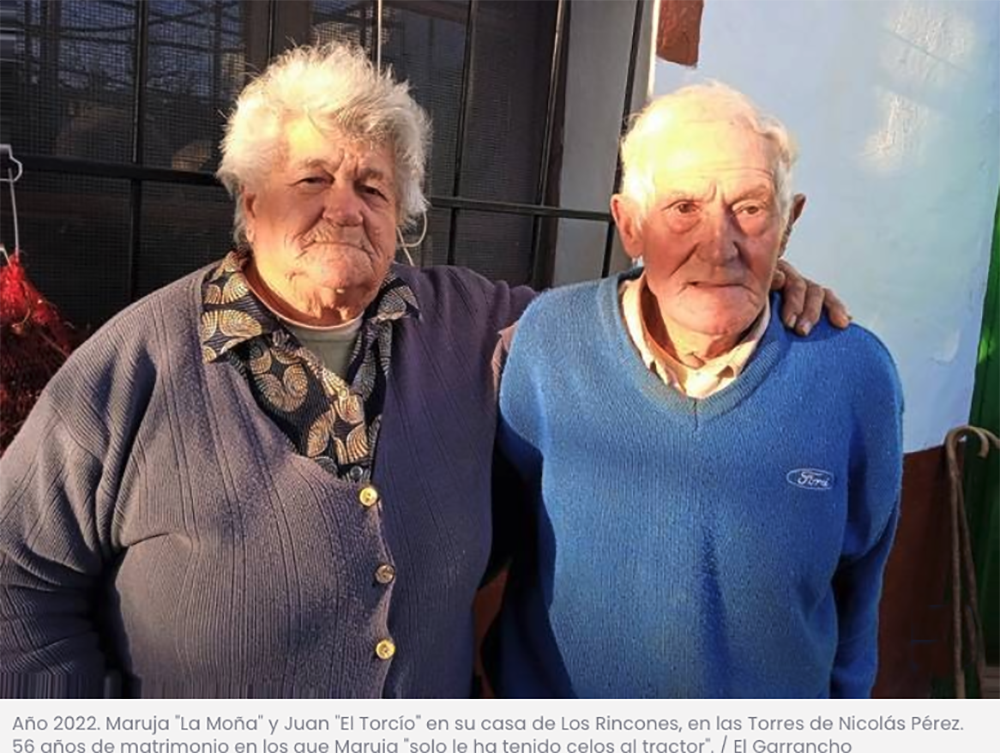 Juan y María llevan 56 años de matrimonio, en los que han compartido innumerables vivencias. Su vida ha sido un “tira y afloja”, ayudándose el uno al otro. Si Juan se iba a labrar Maruja se iba con él. “No le ha tenido celos nada más que al tractor”. Han compartido las vivencias de unas generaciones que se esforzaron y sacrificaron al máximo por nuestro futuro. Sin los avances actuales, ni electrodomésticos, ni agua corriente. Hace 47 años que pusieron la luz eléctrica y hasta hace 24 años se seguía funcionando con pozos y aljibes...