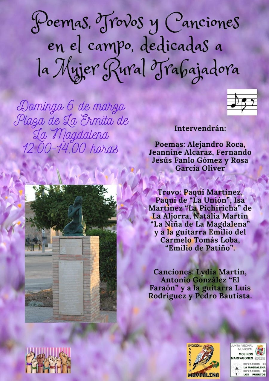 La asociación de vecinos y la junta vecinal municipal organizan este domingo la jornada 'Poemas, trovos y canciones en el campo, dedicadas a la mujer rural trabajadora', en un acto que tendrá lugar en la plaza de la Ermita del pueblo entre las 12 y las 14 horas.