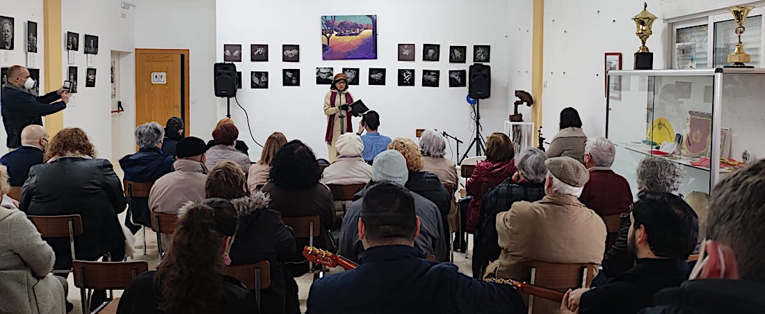 El tributo a las mujeres de las poblaciones de nuestros campos se llevó a cabo, dentro de la semana del ‘Día internacional de la mujer’, en el local social de la asociación de vecinos de La Magdalena con poemas de Alejandro Roca, Jeannine Alcaraz, Fernando Jesús Fanlo Gómez y de Rosa Oliver, junto con los trovos de ‘Paqui de La Unión’, ‘Isa la Pichiricha’ de La Aljorra’ y Natalia ‘La niña de La Magdalena’, con ‘Emilio de Patiño’ a la guitarra, mientras que las canciones fueron ofrecidas por Lydia Martín, Antonio González ‘El Farón’ y los guitarristas Luis Rodríguez y Pedro Bautista.