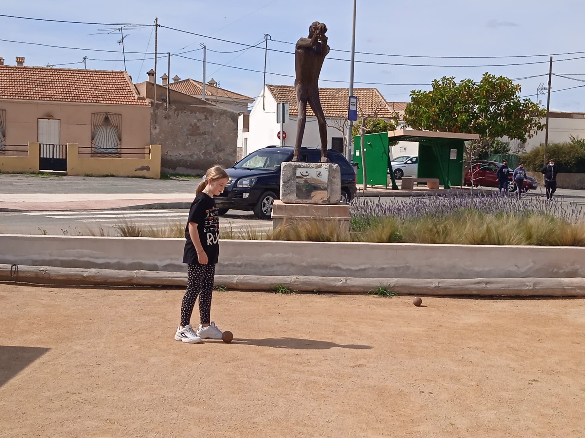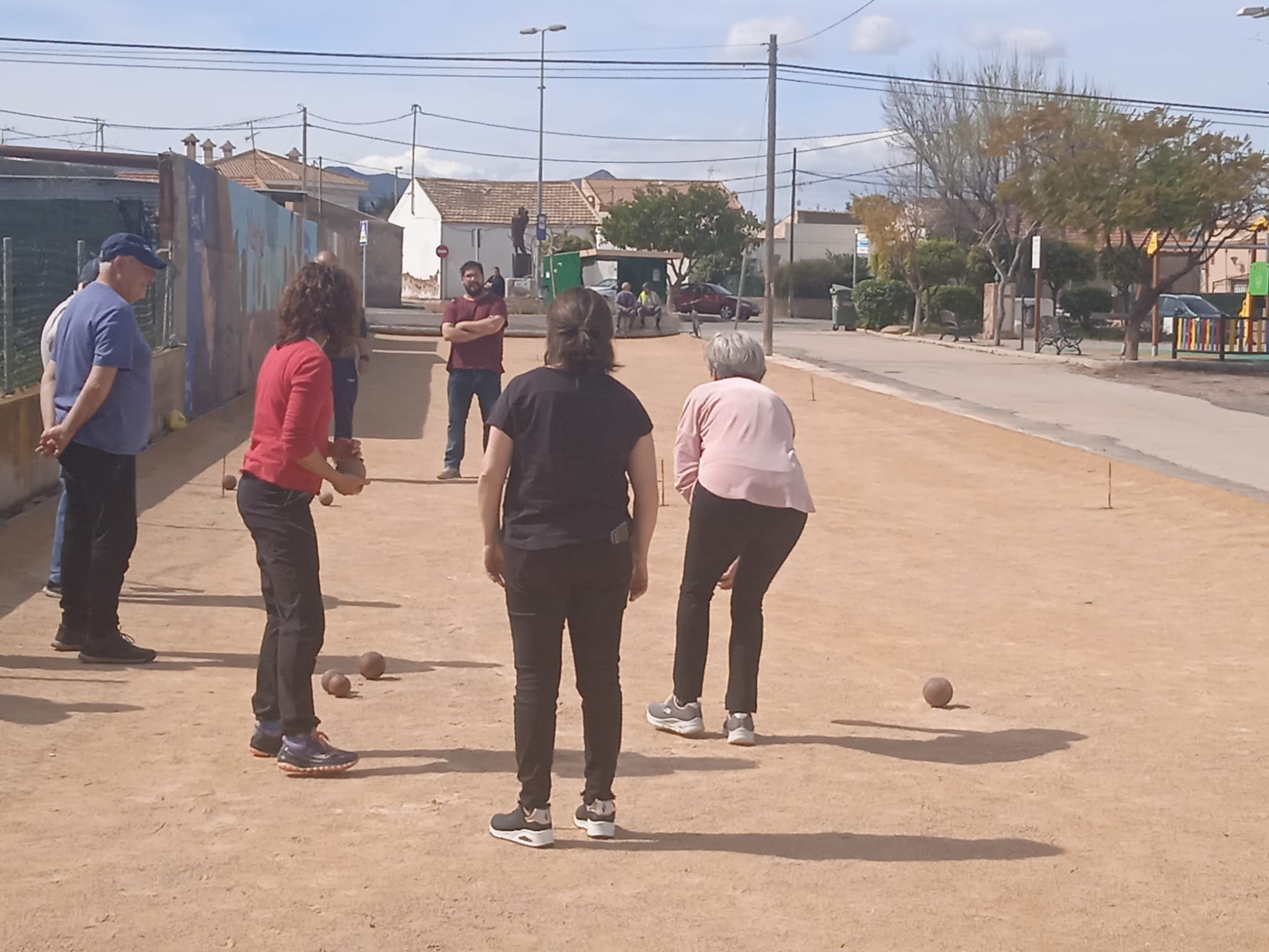 Veteranos y jóvenes comparten una jornada de bolos en La Magdalena. Los más jóvenes han podido conocer los consjos de los mayores para jugar a los bolos cartageneros.