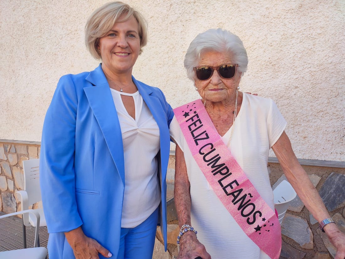 La hiperactiva María Navarro o 'Mariquita', como se la conoce en su pueblo de Molinos Marfagones, ya está en los 104 años de edad. El día de su cumpleaños tuvo una sorpresa con la presencia de la edil Paqui Martínez Sotomayor y de las cámaras de la televisión autonómica 7tvRM, además de familiares y amigos. No faltó el soplido a las tres velas numéricas.