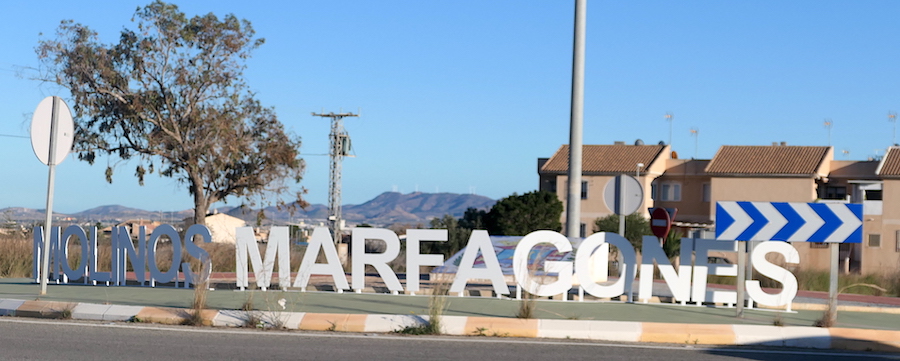 El Ayuntamiento de Cartagena ha repuesto las letras que anuncian el inicio de Molinos Marfagones por la redonda de acceso desde la carretera de Mazarrón. Ahora son de metal, después de que las que colocó de escayola años atrás fueran repetidas veces destrozadas por actos vandálicos.