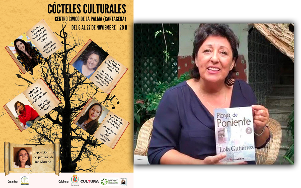 La Asociación de Vecinos de La Palma organizará todos los sábados de noviembre sus 'Cócteles Culturales' que aúnan la exposición de pintura de Lina Moreno, de 19:30 a 20:00 horas en la Asociación de las Amas de Casa, y encuentros con las escritoras cartageneras Lydia Martin, Lola Gutiérrez, Nati Morata y Naiara González, a partir de las 20:00 horas en el Centro Cívico,.