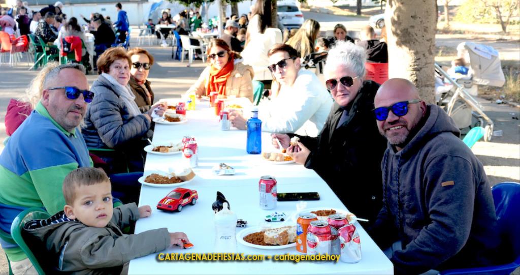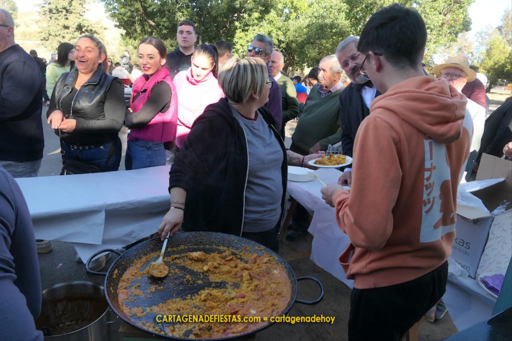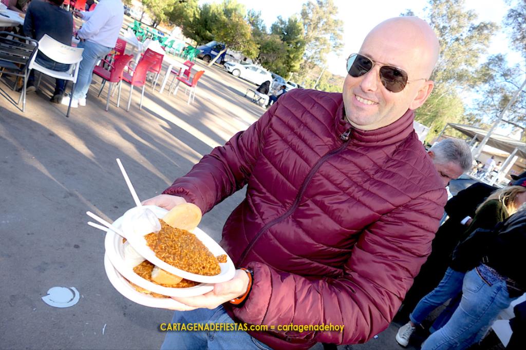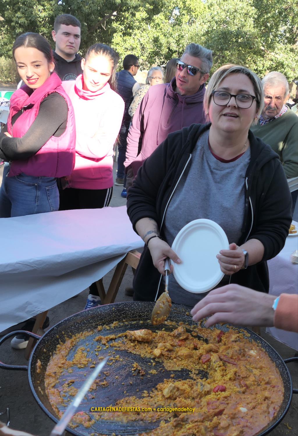 Los vecinos de El Llano del Beal completaron la jornada en honor a la patrona de la minería con una doble propuesta de arroz con pollo y de caldero, que fue el epicentro gastronómico de una estupenda convivencia en el recinto festero.