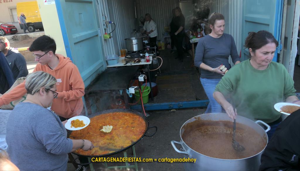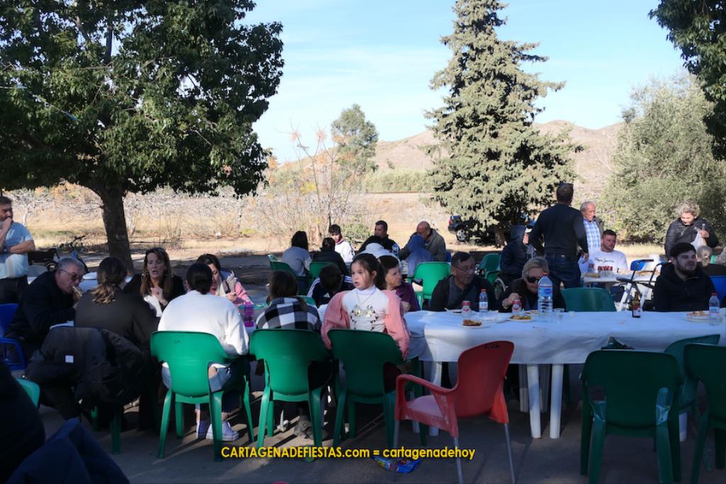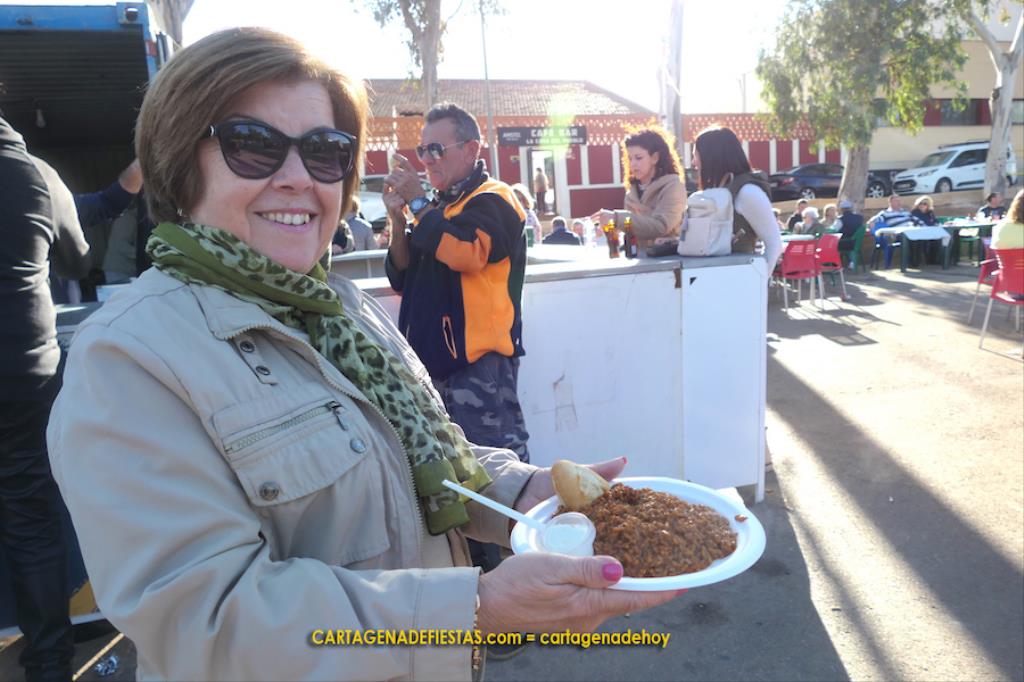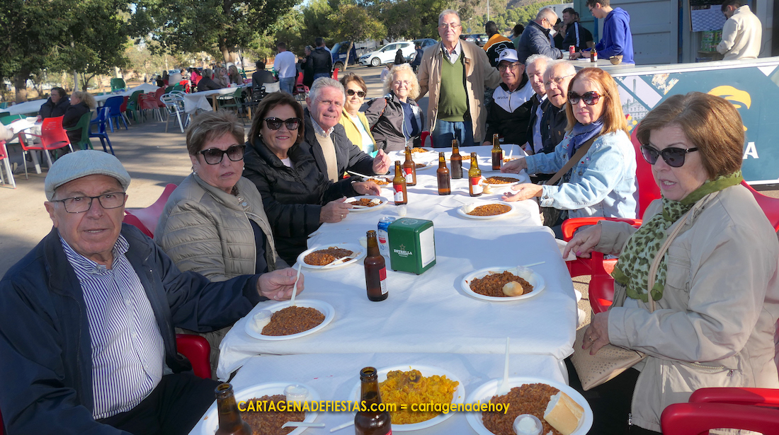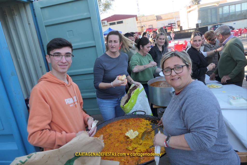 Los vecinos de El Llano del Beal completaron la jornada en honor a la patrona de la minería con una doble propuesta de arroz con pollo y de caldero, que fue el epicentro gastronómico de una estupenda convivencia en el recinto festero.