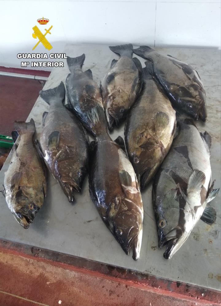 Durante la operación, los guardias civiles se han incautado de alrededor de 300 kilogramos de pescado, entre los que se encuentra especies como mero (Epinephelus marginatus), abadejo (Epinephelus fasciatus), cigarrón (Scyllarides latus), sargo real (Diplodus cervinus), pulpo (Octopus vulgaris) y corvina (Argyrosomus regius), así como la embarcación y los artes de pesca utilizados para la actividad delictiva ahora esclarecida.