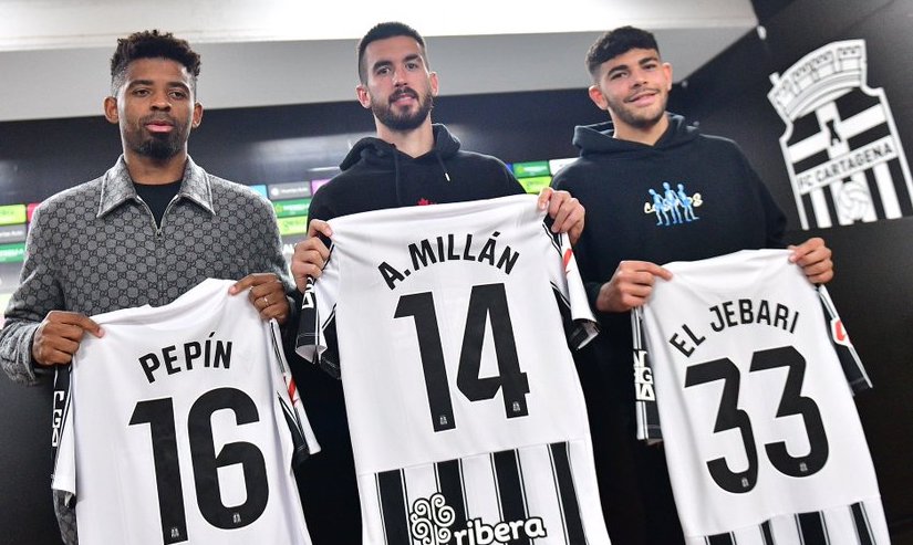 Esta mañana ha tenido lugar, en el estadio Cartagonova, la presentación de Álex Millán, Salim El Jebari y Pepín Machín, como nuevos jugadores del FC Cartagena, acompañados por el director deportivo del club Manolo Sánchez Breis.