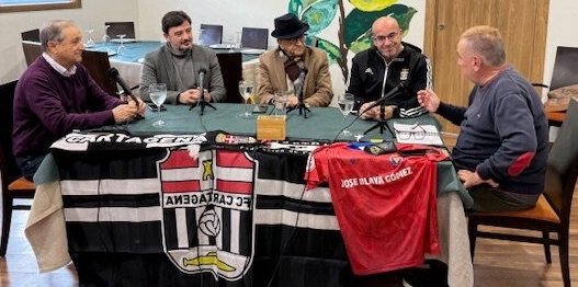 David Ayala, presidente del Odilo Cebé Cartagena y que ha reactivado la afición por el deporte de la canasta en la ciudad, ha sido novedad esta semana en la tertulia organizada por el diario digital Cartagena Actualidad, que también ha contado con la presencia de Pencho Angosto, además de los habituales Pepe Martínez, Lorenzo Vergara y José Pascual López.