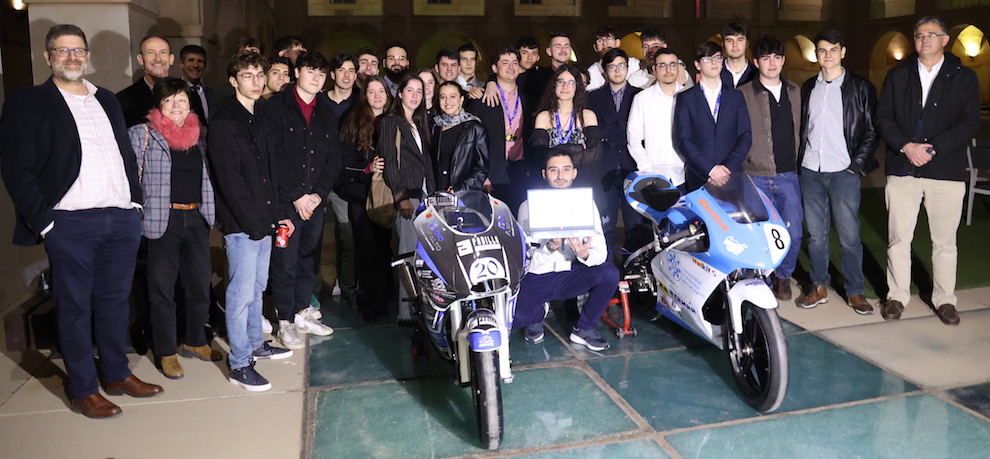 El equipo que integran hasta 37 estudiantes de la UPCT presentó anoche el diseño 3D de su nueva moto, cuyo chasis y tijas ya están en proceso de fabricación en Mecánicas Bolea y en el CIFP Politécnico, respectivamente.