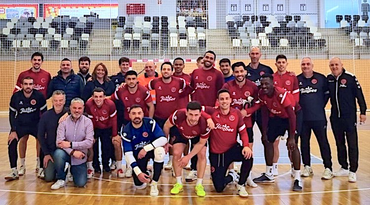 El encuentro de la máxima categoría del fútbol sala español comenzará a las 20 horas en el pabellón Siglo XXI de Zaragoza, lugar donde se observa a los jugadores cartageneristas en la foto superior.