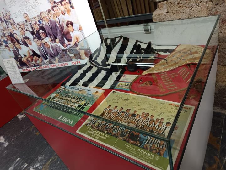 Igualmente, está el balón con el que el F.C. Cartagena le ‘endosó’ al Real Murcia la histórica goleada del 1-4 en el estadio de La Nueva Condomina el 8 de noviembre de 2009, así como una fotografía del marcador. Se produjo ante 8.000 cartageneros lo cual es, hasta la fecha, el mayor desplazamiento de aficionados que se ha producido en el fútbol regional.