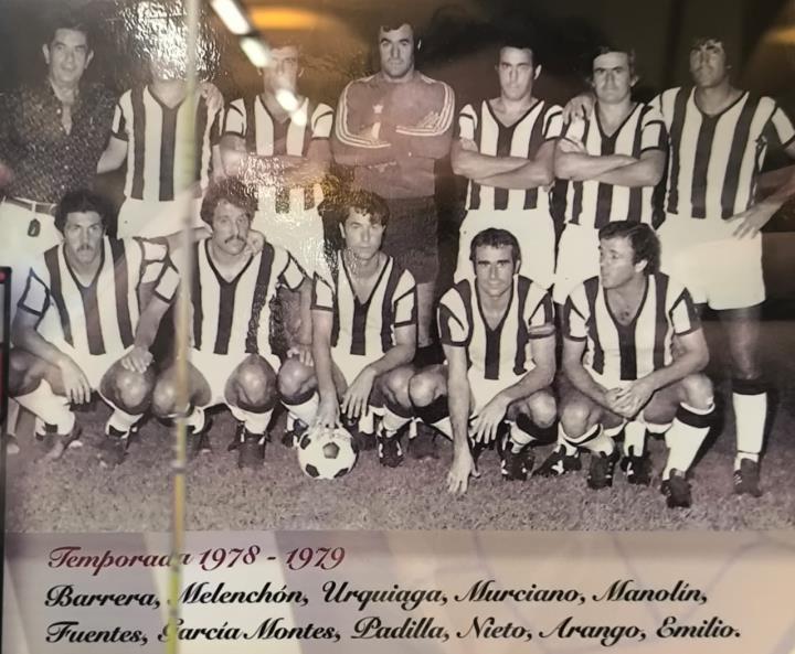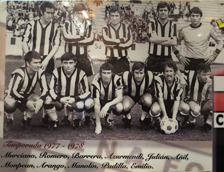 También una fotografía y un panel explicativo del gran aficionado que fue ‘El Abute’, un ex–legionario que iba al estadio de El Almarjal acompañado de un perrito uniformado de albinegro.