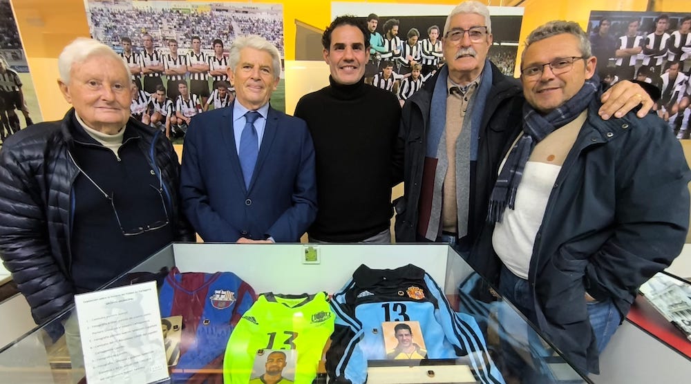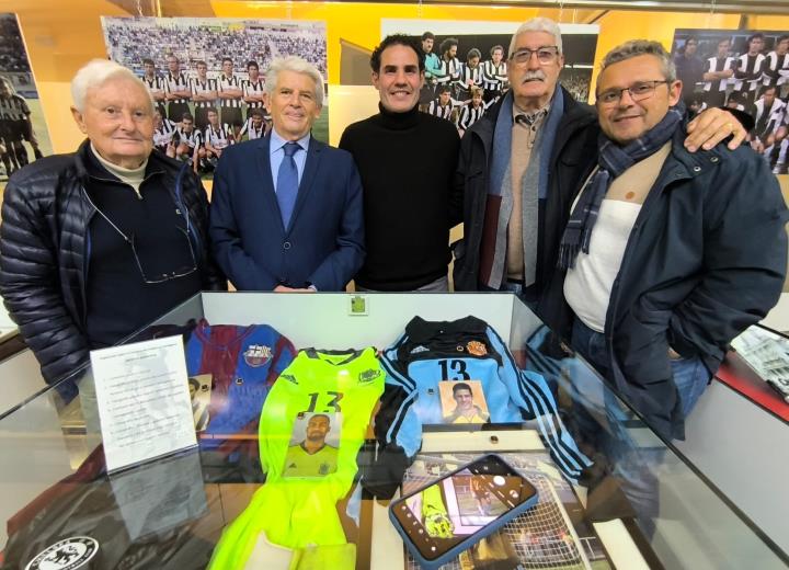 La inauguración de la exposición en el Archivo Municipal sobre los ciento veinte años de historia de este deporte en Cartagena ha servido también para reclamar un lugar permanente donde mostrar esta riqueza balompédica. La muestra ha servido también para reunir a personas que han dejado huella, como José Luis Belda (expresidente), Alonso Gómez López (exárbitro), los porteros Juanmi y Paco López y el periodista Juan Pedro Hurtado, que son los que posan en la foto adjunta.