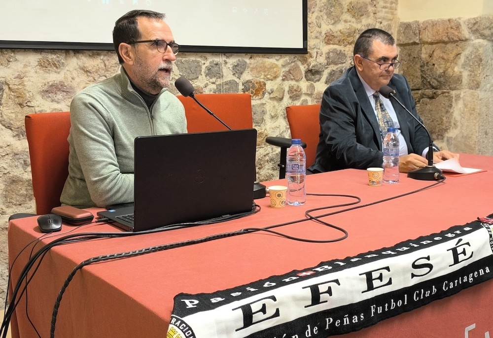 El evento ha sido introducido por Luis Miguel Pérez Adán, Cronista Oficial de Cartagena y anfitrión de la exposición, afirmando que «hemos decidido ceder este espacio para realizarla porque la historia de Cartagena es la historia de su fútbol dado que, en nuestra ciudad, llevamos más de 120 años disfrutando este deporte».
