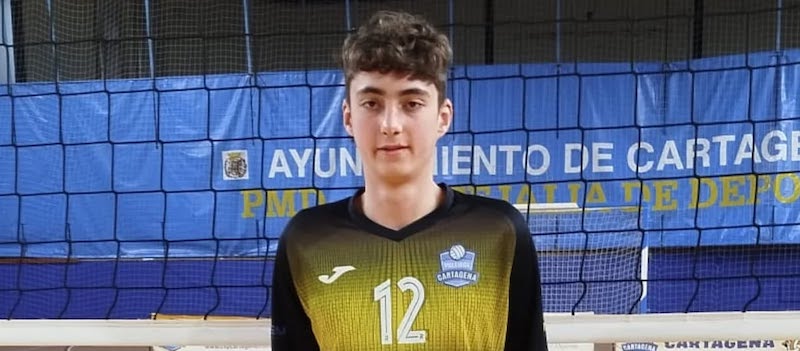 El canterano del Club Voley Playa Cartagena es jugador cadete de primer año y estará en la concentración nacional que tendrá lugar en Lugo del 13 al 24 de abril, además de disputar en los días siguientes un torneo clasificatorio para el Europeo.