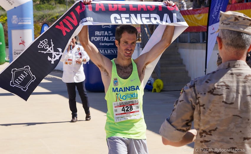El brigada militar ha sido el primero en alcanzar la meta ubicada en la 'Escuela de Infantería de Marina General Albacete Fuster' tras ser el dominador en la casi totalidad de los 54 kilómetros de recorrido, en los que ha conseguido un tiempo de 3 horas y 57 minutos. En féminas ha ganado Maricarmen Martínez Sáez, enfermera de profesión.