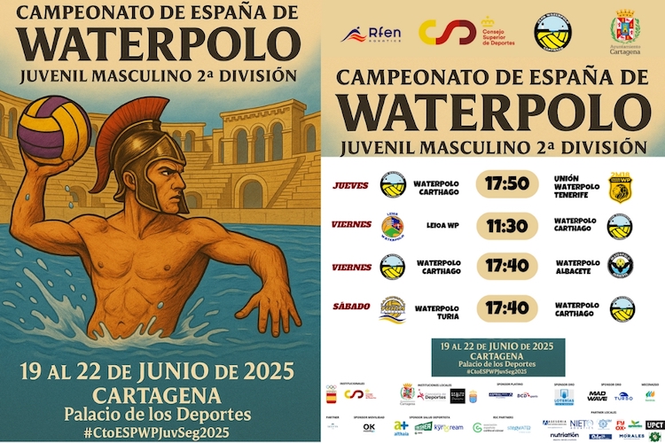 El Carthago disputa esta semana en Cartagena el ascenso a la máxima categoría juvenil, disputándose los partidos entre el jueves y el domingo próximos en la piscina del Palacio de Deportes, siendo los rivales conjuntos de Tenerife, Valencia, Albacete y Leioa.
