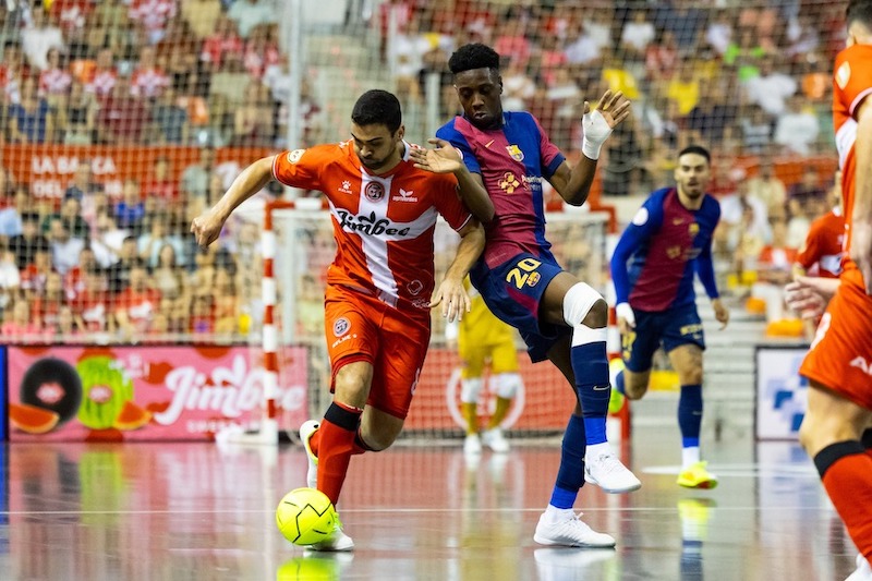 Faltando tres minutos y medio, Duda agotó otro 'tiempo muerto' para aclarar ideas a sus jugadores, prolongándose el parón del juego por otro espectador atendido por el calor. Waltinho, Tomaz y Motta probaron fortuna sin premio. Erick sufrió un problema muscular y otro parón tuvo el partido. Era difícil coger el ritmo, pero todavían quedaban dos minutos y medio. Todo era posible pese a la solidez que mostraba la fortaleza defensiva azulgrana. Se sucedieron los remates y los despejes, pero el balón no llegaba hasta la meta de Dídac. El público empujaba tanto como se abanicaba. Cortés, al evitar un gol a la contra del rival se hizo daño en el hombro. Otro stop al reloj.