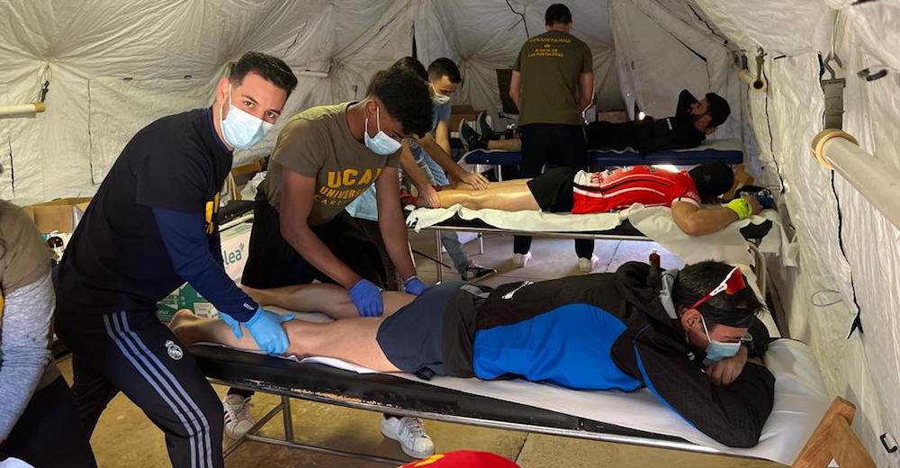Sesenta alumnos de los grados en Fisioterapia, Podología y Enfermería de la Universidad Católica San Antonio en Cartagena han estado atendiendo a los corredores, que así lo solicitaban, en la XI Ruta de las Fortalezas que ha disputado hoy.