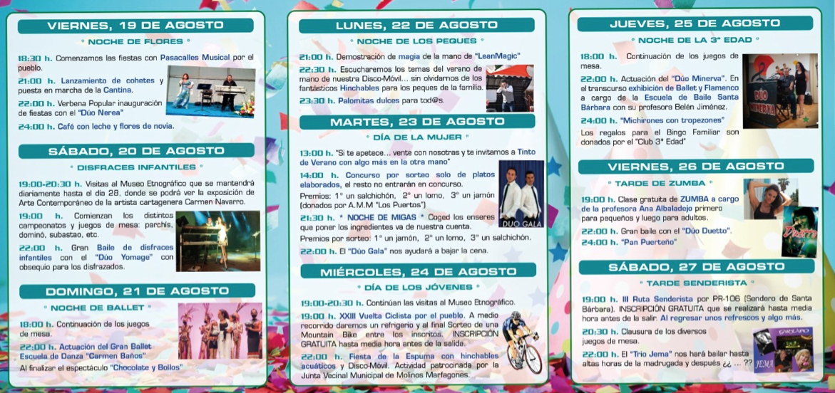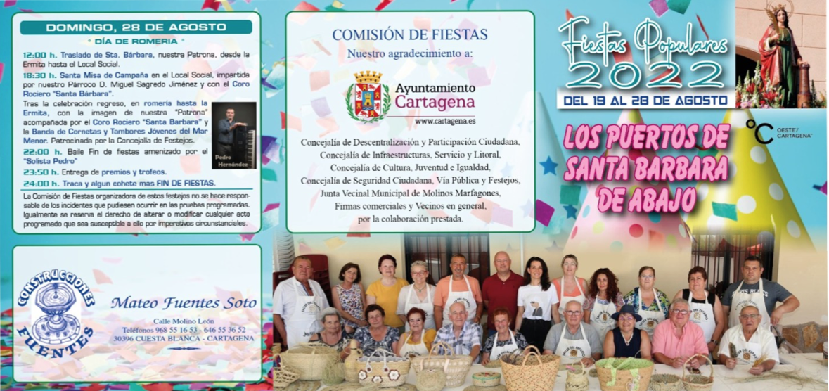 Este año, la Comisión de Fiestas de la Asociación de Vecinos, con la colaboración de la Concejalía de Festejos del Ayuntamiento de Cartagena, ha preparado un completo programa de actividades para el disfrute de vecinos y visitantes.