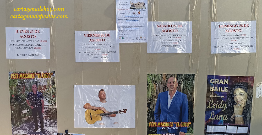 Disfraces, arroces y colchonetas acuáticas animarán los actos entre el jueves y el domingo, con verbenas para bailar que contará con doblete de Pepe Márquez ‘El Cuco’, además de ‘Leidy Luna’ e ‘Ilusión’. El programa organizado por la asociación de vecinos El Progreso se completa en la barriada con los que actos religiosos que desde este miércoles organizan la parroquia, la cofradía y la hermandad de romeros que también llevan el nombre del patrono de Cartagena.