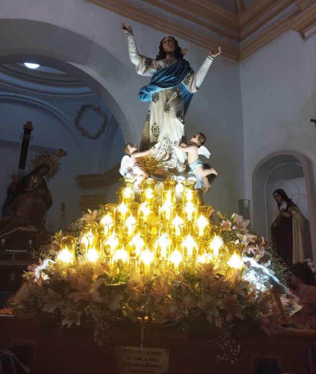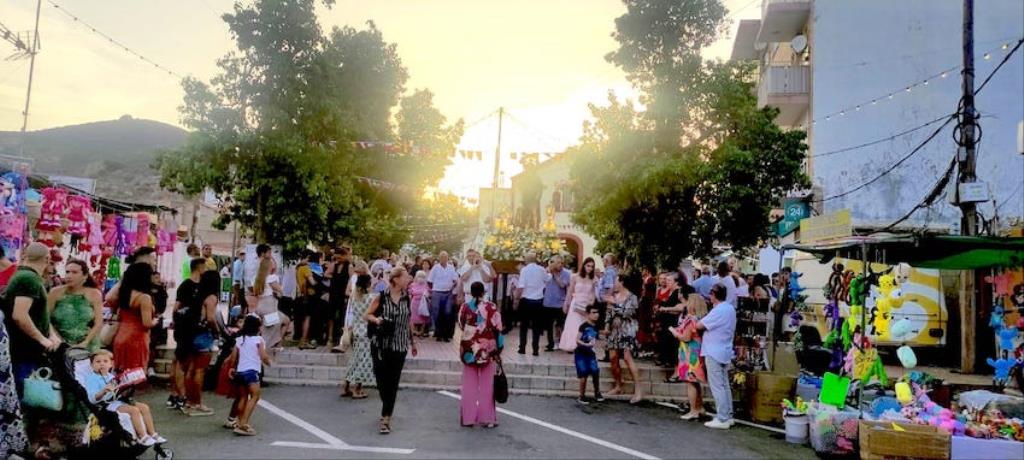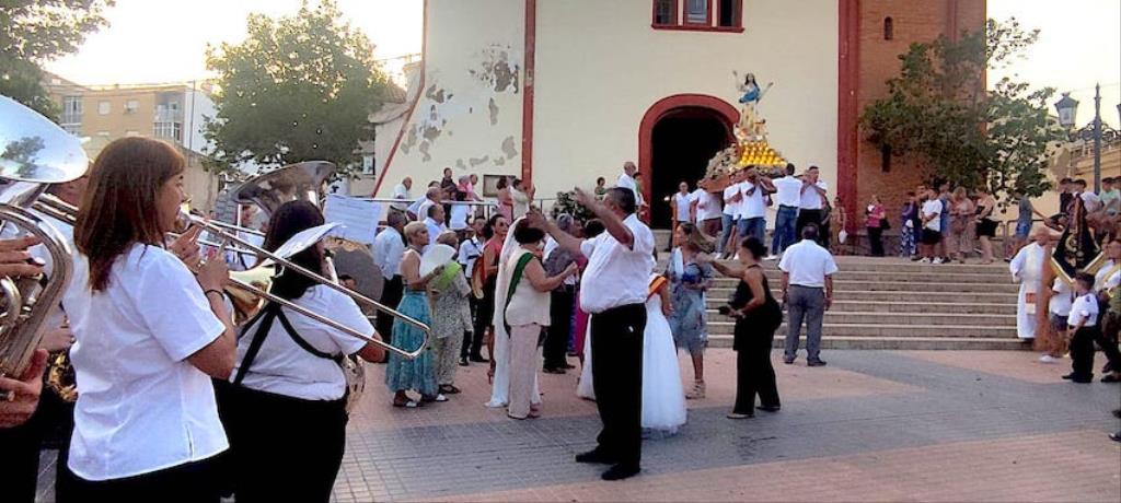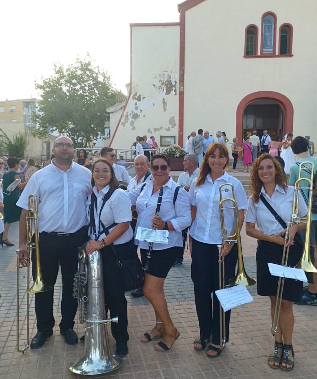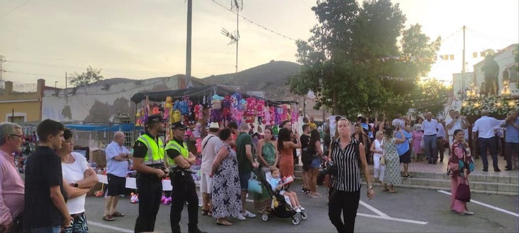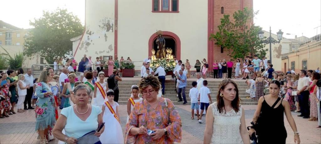 La charanga de la Agrupación Musical ‘Cartagena 1990’ puso la animación en el pasacalles de recogida de reinas, mises y padrinos por el pueblo, alcanzando después la iglesia, donde se celebró una misa solemne en honor al patrón, que fue oficiada por Andrés Vera y que contó, entre los asistentes, con los concejales Paqui Martínez Sotomayor, Jesús Giménez y Enrique Pérez Abellán. A su conclusión, comenzó la procesión. Primero fue la Virgen de la Asunción la que cruzó el pórtico de la parroquia y se asomó al exterior, recibiendo vivas que continuaron cuando fue San Roque el que se ubicó en lo alto de la escalinata.