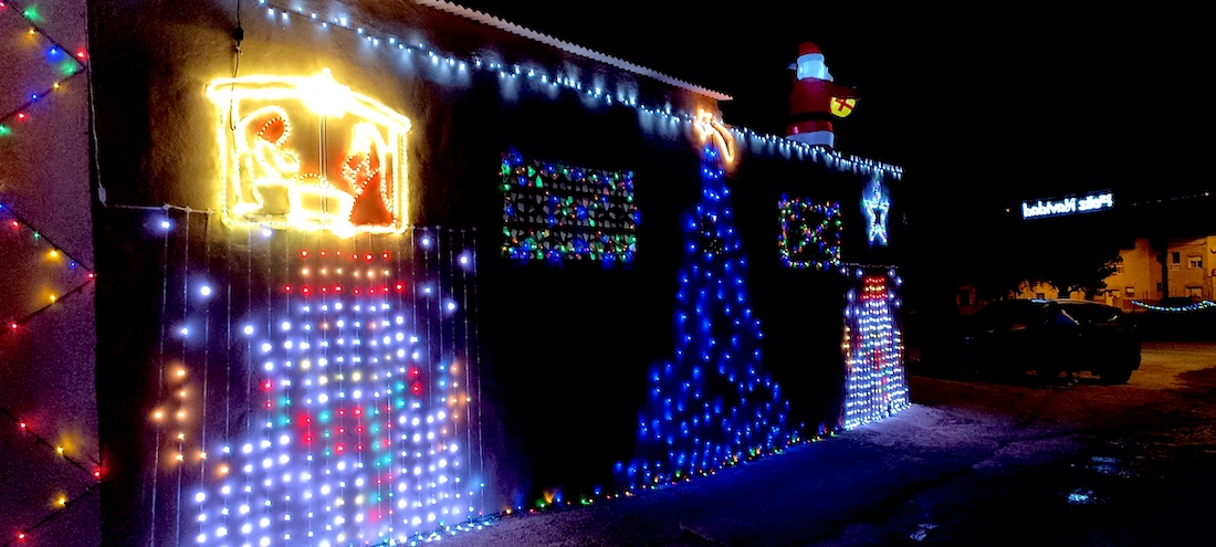 El trabajo de instalación de esta obra lo inició hace unos dos meses. “Lo primero que hago es revisar todas las luces del año anterior y reparar las que se hayan estropeado”, nos explicado, para después comenzar a instalar lo que tenía más las nuevas incorporaciones, como este año han sido los Reyes Magos y las cortinas de imágenes que están en un lateral de la finca a lo largo de una pared de unos ciento cincuenta metros. Son escenas en movimiento que, además, controla desde un terminal móvil, pudiendo cambiar las temáticas. Espectacular.