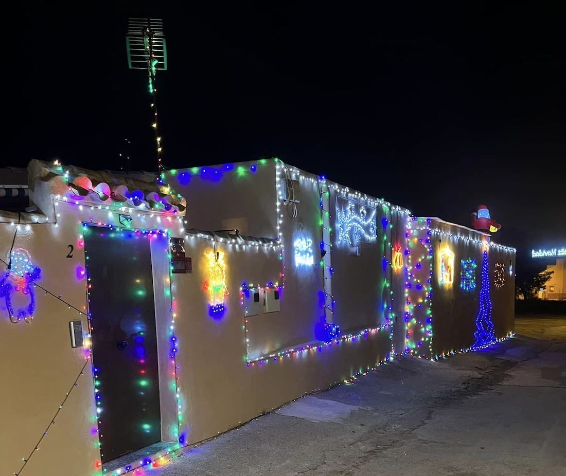 Toda la obra está coronada por una estrella navideña ubicada en la antena de televisión, la cual va alternando sus tres posiciones. Toda la pared que rodea a la vivienda familiar tiene algún tipo de iluminación, pero el montaje salta también a una antesala donde el joven de El Beal ha montado un jardín con un árbol luminoso y dos palmeras, en cuyos laterales hay dos renos de luces que le ha regalado un vecino. Él ha creado ese espacio con azada, habiendo enterrado los cables y formado un pequeño perímetro elevado donde ha instalado macetas con la flor de Navidad, “es un trabajazo, pero disfruto”, apunta. También es novedad el ‘Feliz Navidad’ de luces de la entrada, que, tras ardua búsqueda, localizó en tierras de Barcelona.