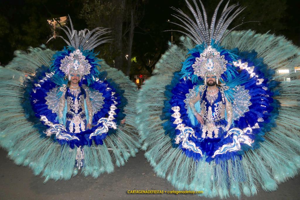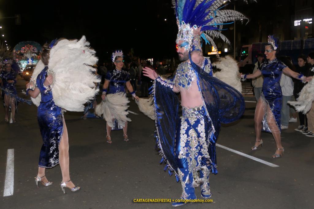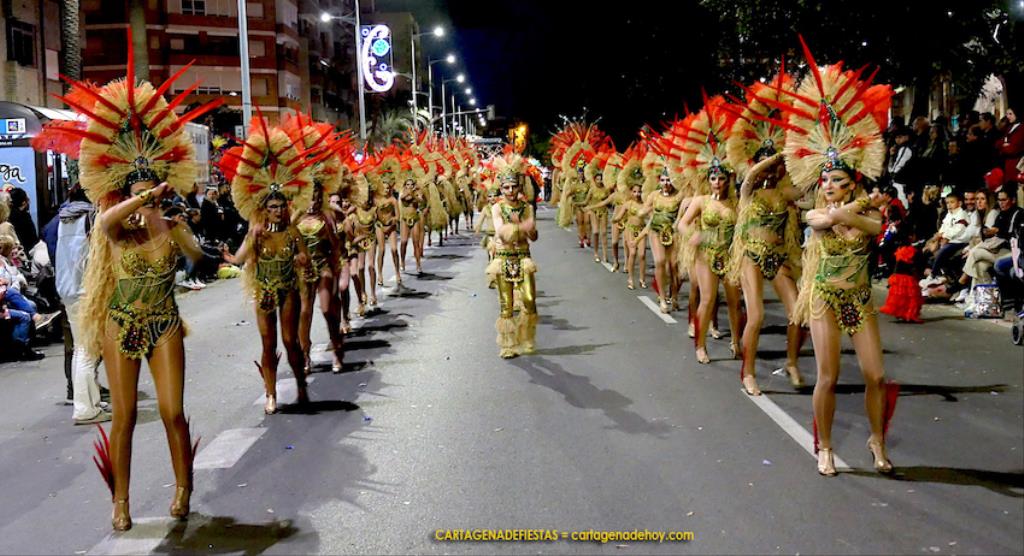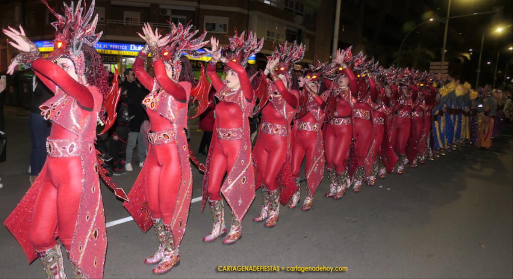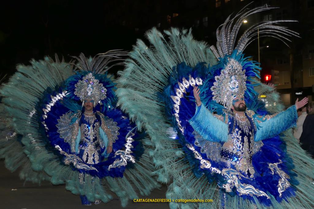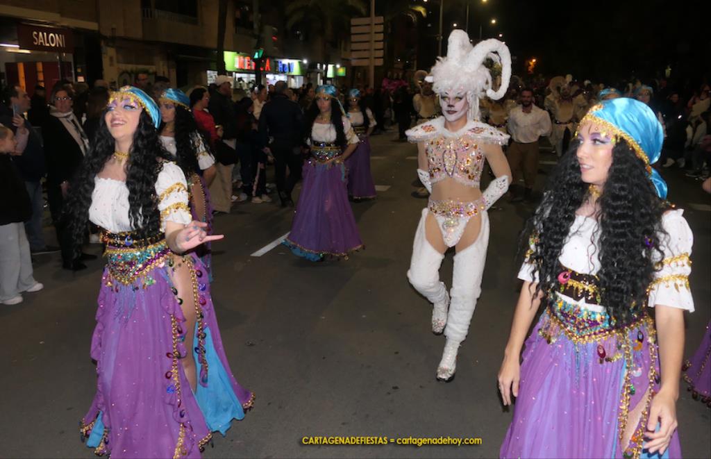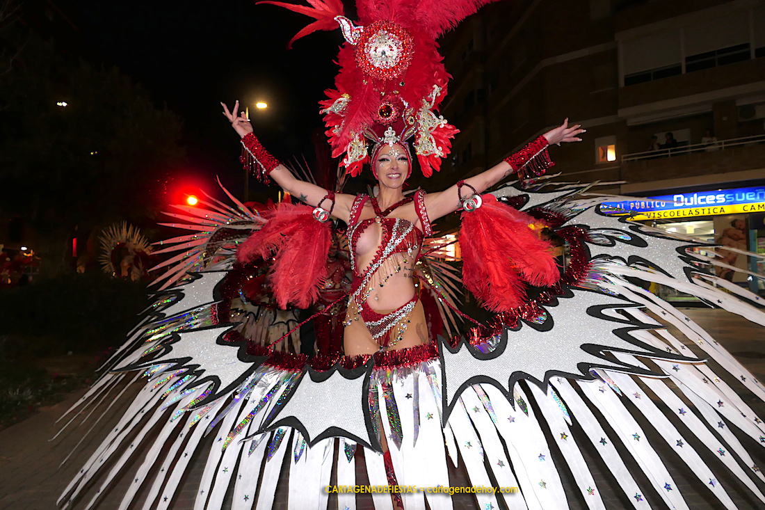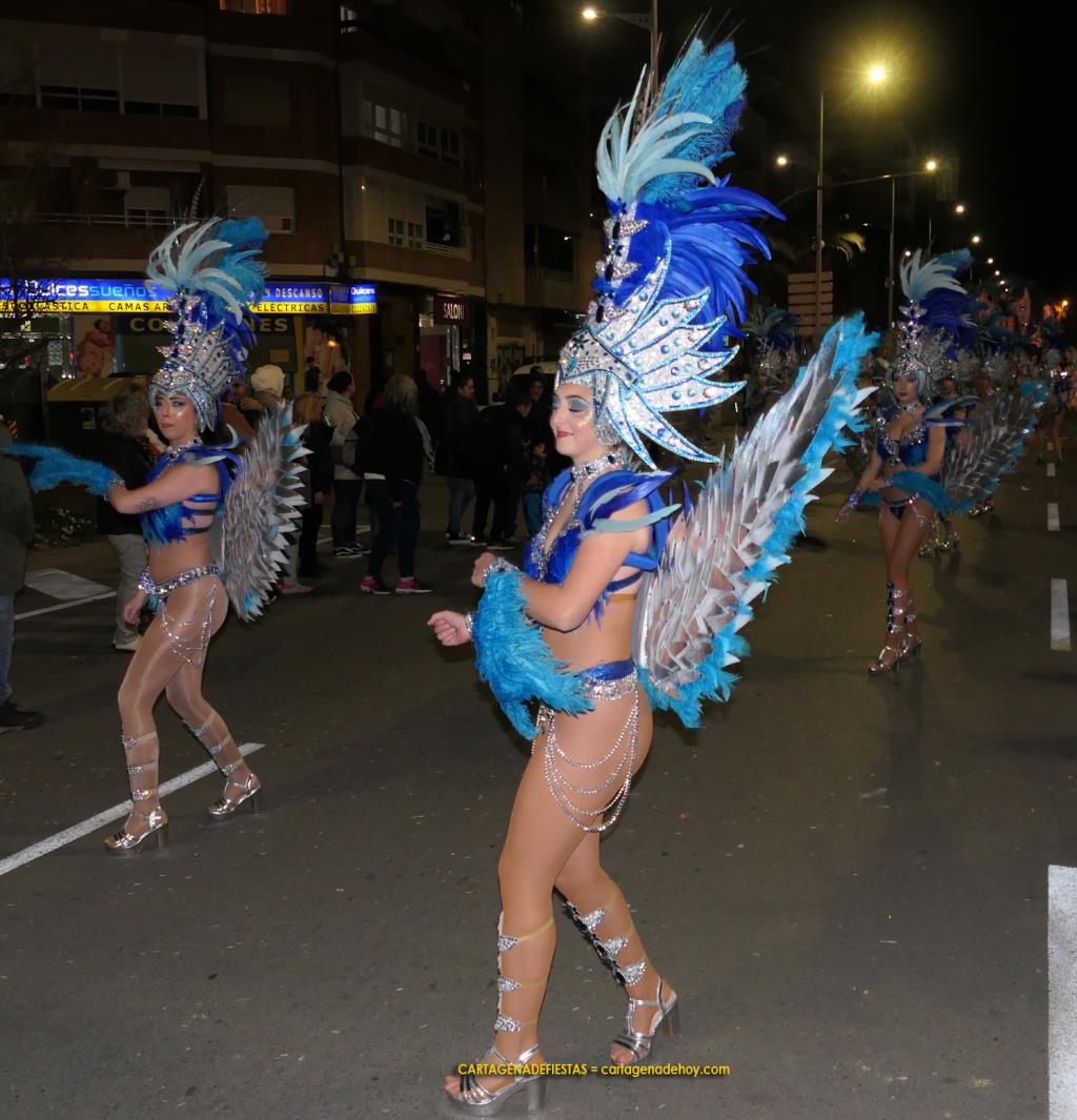 La Real e Ilustre de Vista Alegre puso la 'aborregada' crítica de este año, lo que tiene artículo propio en este periódico de Cartagena y su gente, al igual que el novedoso e inclusivo grupo de la ONCE. Nos queda referirnos a las comparsas adultas. Mucha pluma, ritmo coordinado e imaginación. Fueron, demás de las mentadas arriba: Sambao, Aporué, Atalaya, Ipanema, Divertilandia, Imagine, Renacer, Perseídas (las más 'carnales'), Deja Vu, Nova Carthago Paraíso, Antares, Ilusión de Galifa (con 3 plataformas), Las Villas de San Antón y las dolorenses de Limón y Sal.