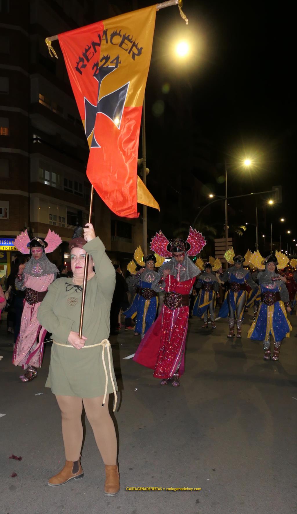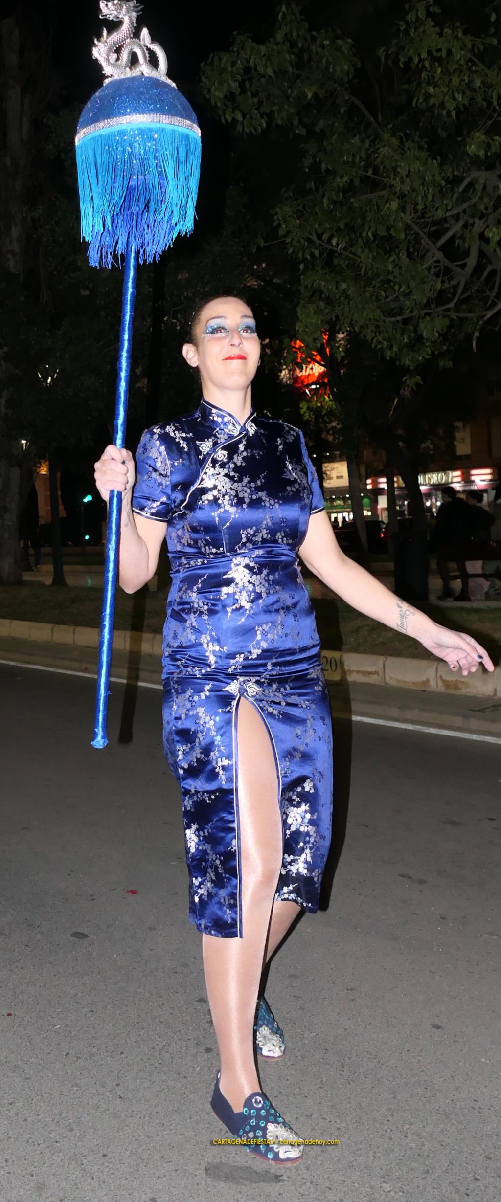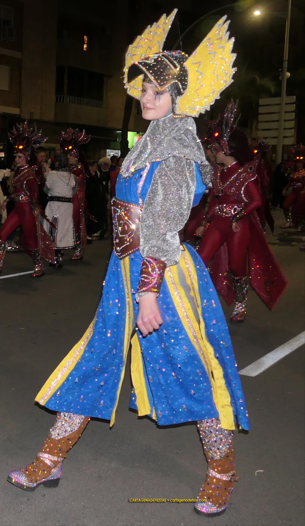 Varios apuntes. La canción de moda de este 2023 fue 'La nochentera' y hubo 9 plataformas. En una de ellas iba Laura Aznar (con Pablo en su interior), quien no se perdió desfilar con 33 semanas de gestación. Aradia sacó un dragón en su montaje chino, Paraíso sigue siendo el que más eleva a sus integrantes, Renacer puso a bailar al medievo... Y sobre los que lucen muchas plumas, resaltar que no lo hacen por cantidad, sino por calidad. La verdad es que la mayoría de trabajos plumíferos son espectaculares y variados. También también dejar constancia, otra vez, de que entre los participantes hay notable mayoría de féminas sobre varones.