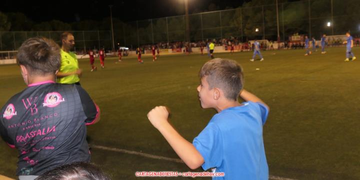 El ambiente respondió a lo esperado, con varios cientos de espectadores en las gradas que el Ayuntamiento trajo de diversos campos del fútbol cartagenero, al igual que un refuerzo para los focos. Entre el público, bastante afición visitante desplazada en cuatro autocares y algún rostro conocido, como Luis Muñoz, jugador del FC Cartagena, con algún compañero. El campo de San Juan Bosco fue un gran punto de encuentro, reencontrando a amigos y haciendo a algunos volver a ver partidos del equipo de su barrio. Por cierto, las entradas costaban 5 euros a los que estaban dentro del campo, pues los hubo también quienes vieron el partido desde terrazas de inmuebles exteriores.