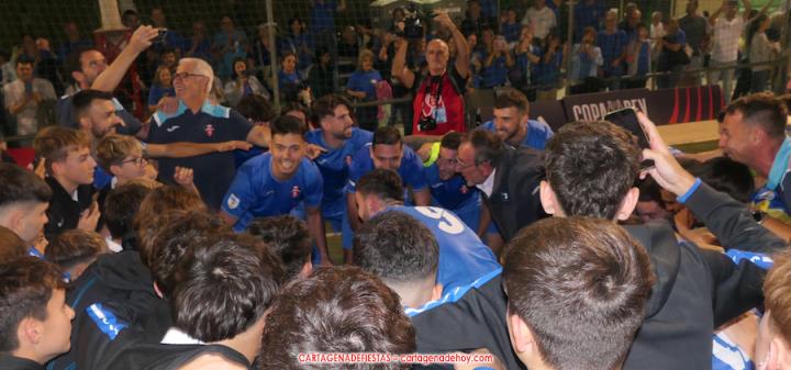 El entrenador, Tano Moltó, los guió hacia lo que debían hacer en ese momento, como era aplaudir a una afición entregada, lo que hicieron mientras que cerca de ellos pasaban los jugadores rivales con sus aficionados, todos totalmente eufóricos y gritando: "¡Sí, sí, sí... Nos vamos a Madrid!", en referencia a que estará en el sorteo de esta mañana en al Federación Española de Fútbol,, donde le ha correspondido como rival el Getafe CF.
