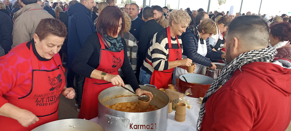 Un éxito resultó el sistema de pasillos ordenadores para el acceso del numeroso público a las ollas. Fue un procedimiento que resultó cómodo y ágil, con lo que a la media hora de comenzar a servirse tazas, quien más y quien menos ya estaba saciado, señal clara de ese éxito.