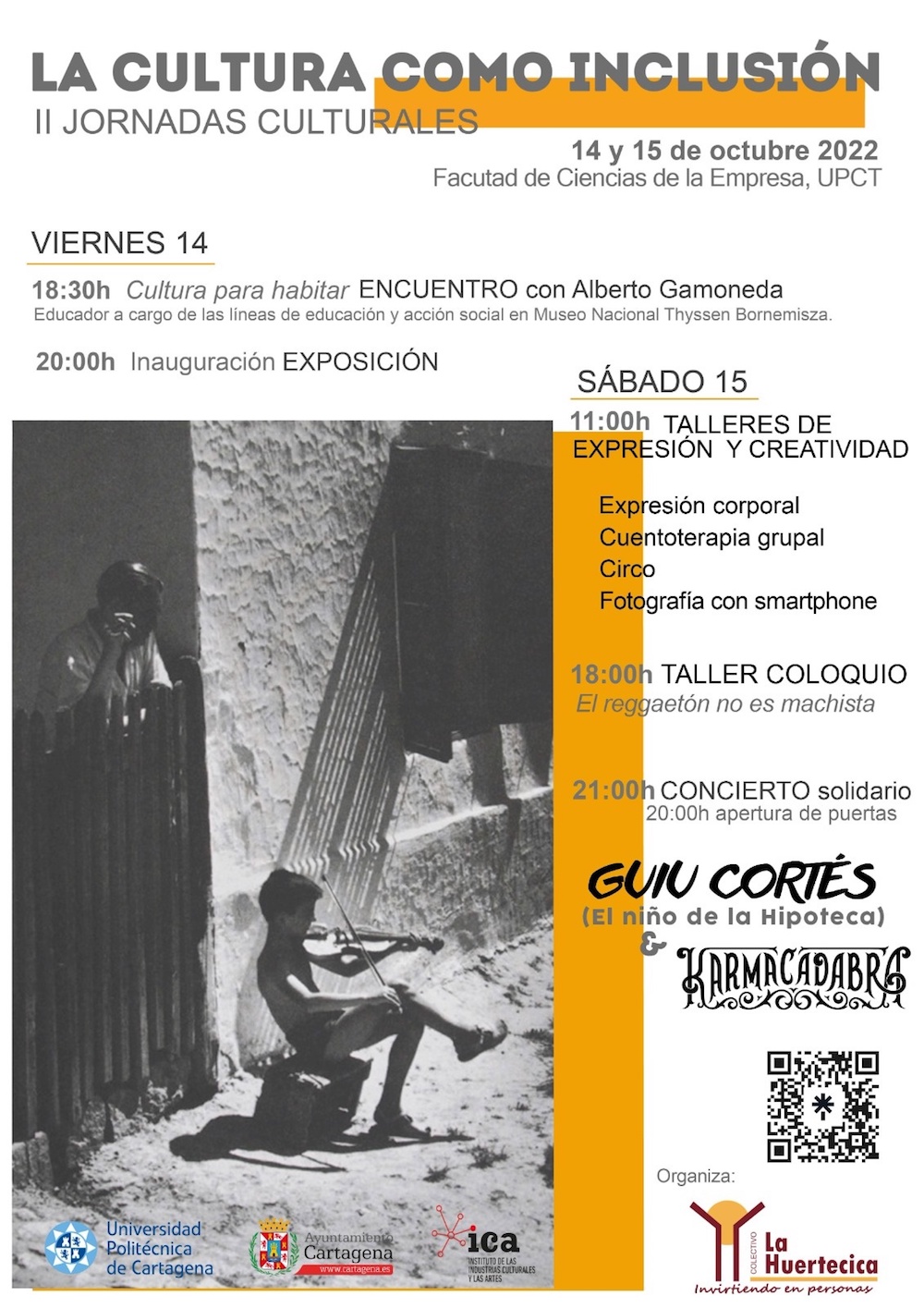 La segunda edición, bajo el título ‘La cultura como inclusión’, se desarrollará en la facultad de Ciencias de la Empresa de la UPCT, durante viernes y sábado próximos con talleres, una exposición y el conciderto solidario de Guiu Cortés ‘El niño de la hipotca’&Karmacadabra.