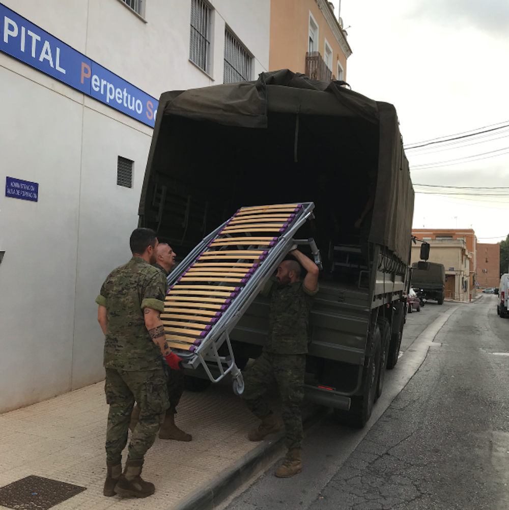 Por otra parte, Andrés Ros ha agradecido la “inestimable labor del ejército, que ha atendido la llamada de Cruz Roja, ya que teníamos dificultades para que las camas entraran en nuestros vehículos y hemos pedido ayuda Regimiento de Artillería Antiaérea nº73”.