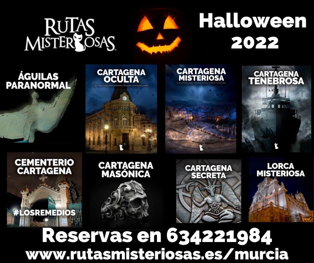 Rutas Misteriosas, la empresa líder en visitas de misterio en nuestro país, tiene planeados recorridos por la Región de Murcia y por toda España en donde los enigmas y las leyendas son los protagonistas de las próximas noches. En el caso de Cartagena hay 5 propuestas para los días 27, 29 y 31 de este mes.