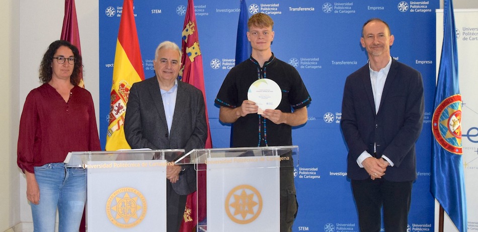 La primera edición de estos galardones, que premian los mejores trabajos fin de estudios del máster en Energías Renovables de la UPCT, han distinguido también a Adelaida Parreño Rodríguez por su proyecto 'Modelado y simulación de redes de distribución con alta integración renovable basado en soluciones open-source', con una dotación de 1.000 euros. Los galardonados han recibido su premio en un acto celebrado en Rectorado, al que han asistido el Rector, Mathieu Kessler, y el presidente de la Fundación Renovables, Fernando Ferrando.