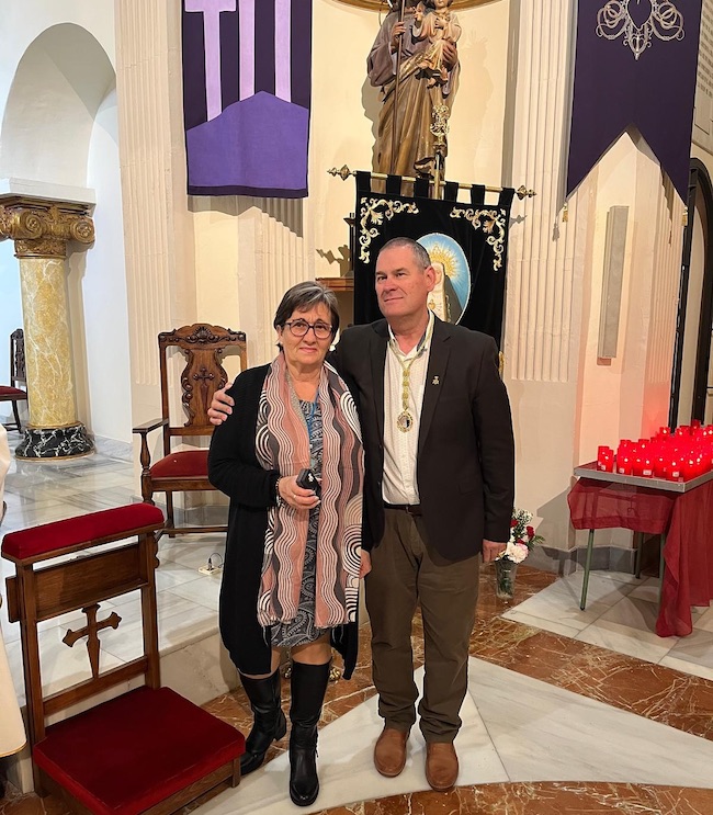 Emilia Gallego Soto ha sido nombrada este año como 'Madrina de honor' de la Virgen de la Soledad de la ermita del popular monte cartagenero y días más tarde su esposo, Ignacio Aparicio Moral, recibió el nombramiento de 'Romero de honor'. El cuadro de honores de la cofradía se ha completado en esta edición con María García López como 'Romera de honor' y con Nacho Jáudenes, edil del Ayuntamiento de Cartagena, como 'Cofrade de honor'.