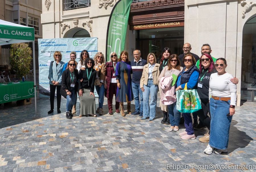 El equipo de 'Misión' de la Asociación Española Contra el Cáncer en la Región ha llevado a cabo en la plaza del Icue el acto 'Todavía sigo aquí. La realidad de los cuidados paliativos’ al que se ha sumado la concejal del área de Política Social, Familia e Igualdad, Cristina Mora.