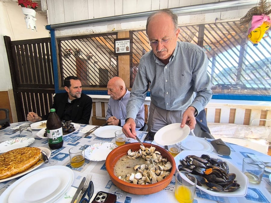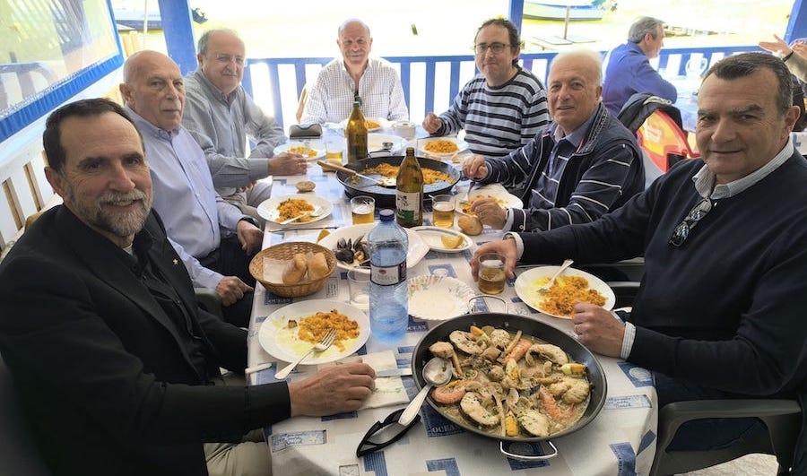 El grupo de amigos de Melchor Miguel Amate se han reunido en un restaurante de la Algameca para hacer balance del primer año de los homenajes que se han llevado a cabo en memoria de su abuelo, popularmente conocido como el ‘Héroe de Chentafa’.