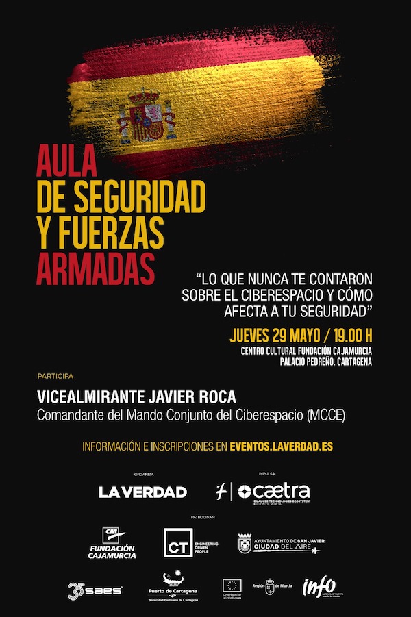 El vicealmirante Javier Roca, comandante del Mando Conjunto del Ciberespacio (MCCE) ofrecerá el 29 de mayo, por la tarde, una conferencia sobre este asunto y lo que afecta a la seguridad en el centro cultural de Fundación Cajamurcia en el Palacio Pedreño de Cartagena.