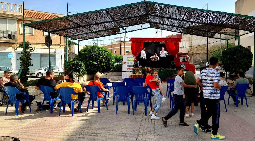 La camioneta 'El remolino' es el vehículo protagonista de la muestra-taller itinerante del arte de la repentización que la Universidad Popular-Out y la asociación cultural 'José María Marín' llevan a cabo por barrios y diputaciones, como muestran estas imágenes de la presencia hace unos días en Santa Lucía.