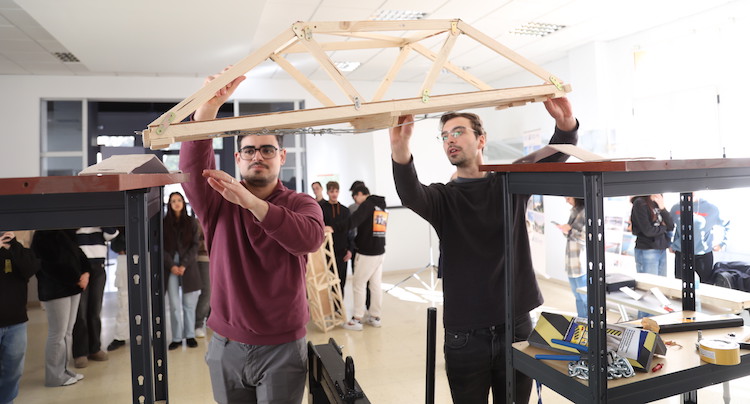 Estudiantes de trece universidades compiten este viernes en la UPCT. Las estructuras serán construidas por la mañana, serán expuestas por la tarde y pondrán a prueba su resistencia el sábado por la mañana. Todo el certamen se celebra en el CIM. Foto de la fase local del campeonato
