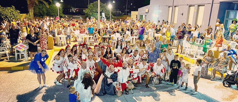 La chirigota de Santa Lucía, entre otros lugares, ha actuado en lo que llevamos de verano en Los Urrutias y Santa Ana, que son las dos fotos que se muestran en este artículo, además de Lobosillo y en el Asilo de Ancianos de Cartagena. En agosto viajarán a Águilas (día 6), Isla Plana (8) y a las tierras almerienses de San Miguel de Pulpí, mientras que el 11 de septiembre visitarán La Pinilla, en Fuente Álamo.