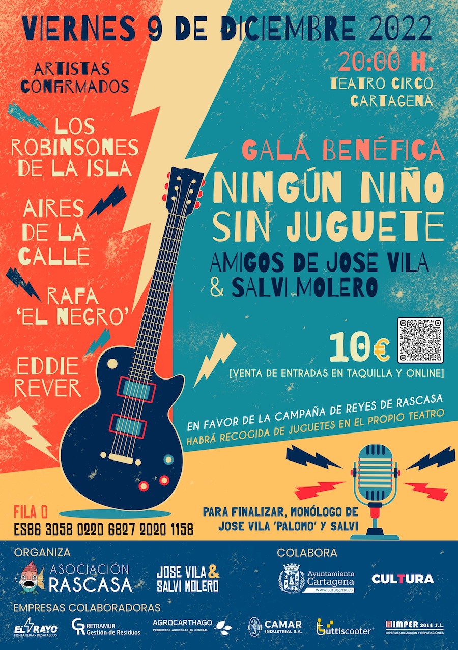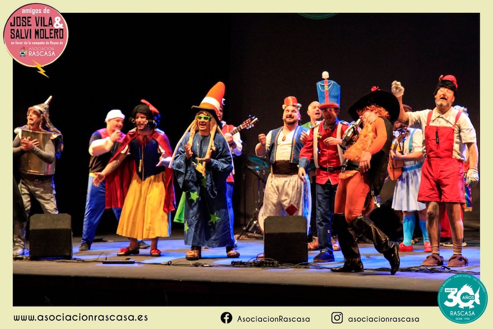 La asociación Rascasa y José Vila&Salvi Moreno organizan la tradicional cita de recogida de juguetes para los niños de familias necesitadas con una cita en el Teatro Circo de Cartagena que contará con 'Los robinsones de La Isla', 'Aires de la calle', Rafa 'El Negro' y Eddie Rever, cerrando un monólogo de Palomo y Salvi. En la imagen, la chirigota de Santa Lucía en la cita del pasado año.