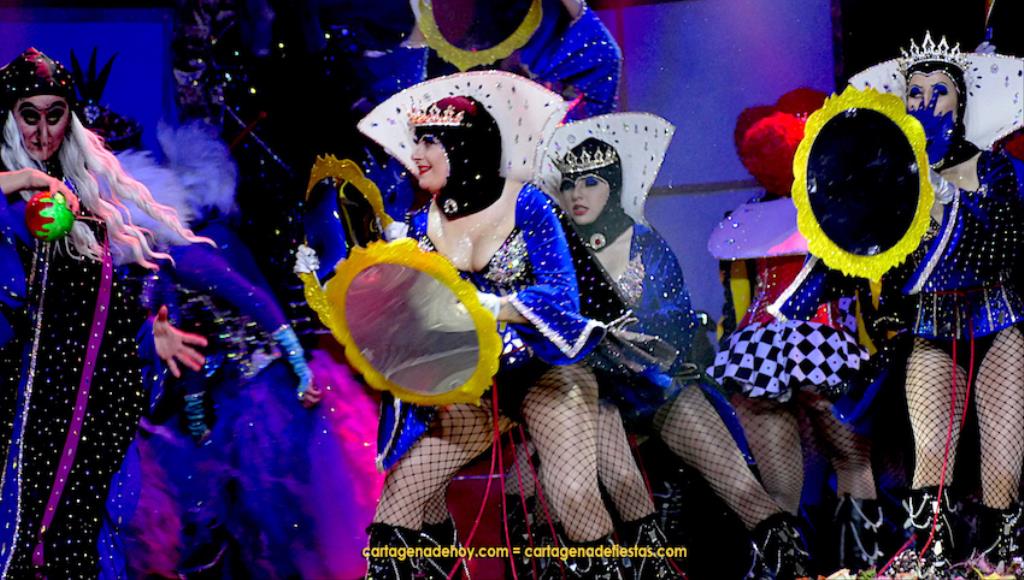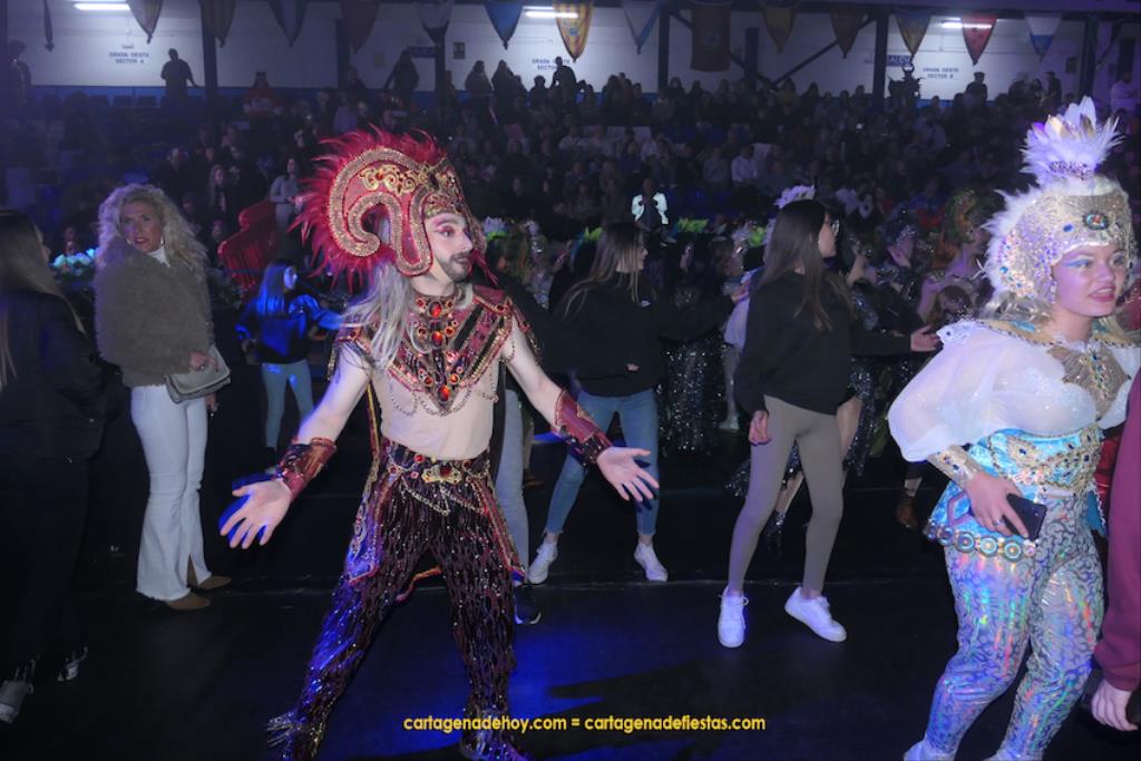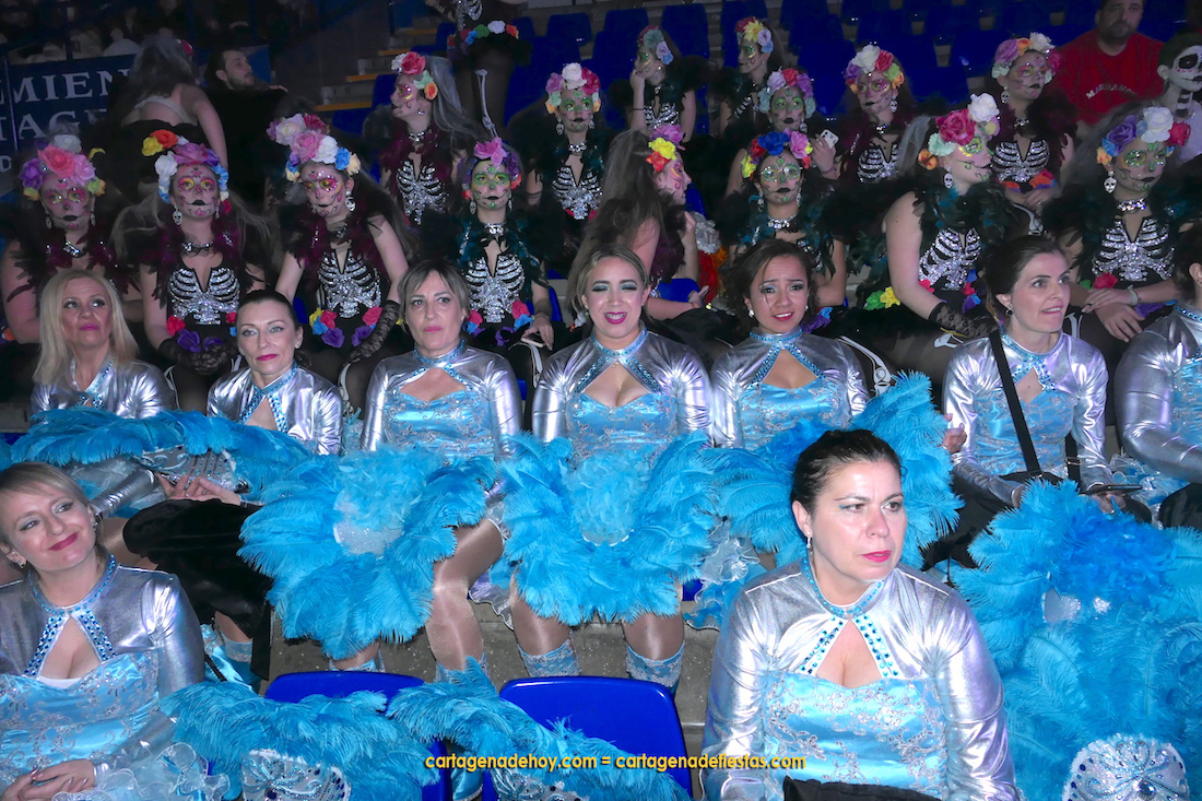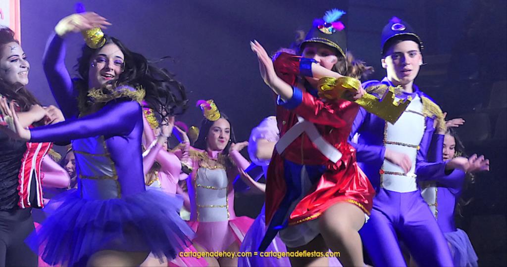 Los restantes grupos que actuaron, en una edición presentada por la periodista Silvia Mateo, fueron Escuela de Danzas Carmen, El Meneo y Escuela de Begoña Navarro (no lo hemos puestos por orden), además de ‘Mamá yo quiero’, grupo yeclano surgido en 2016 y que forman madres de carnavaleros de ‘Destello’. Después de lo acaecido en la gala de elección de la reina del Carnaval, en la que se presentó una candidata con 59 años de edad, su presencia anoche sobre el escenario cartagenero es empujón a derribar esa muralla que parecía limitar el trono o la participación en coreografías sólo para jóvenes. Se dice (al margen del capítulo físico) que la edad real es la de mente… y bien cierto que es.